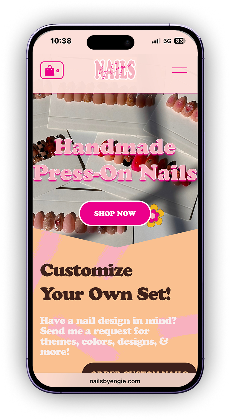 Visit www.nailsbyengie.com to view the site and discover press-on nail sets!